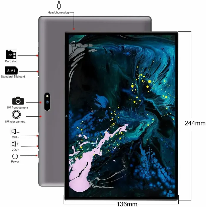 Colore:GrigioColore: grigio Sei ancora preoccupato di trovare un tablet come il tuo? Perché non scegliere AOYODKG? AOYODKG è un’azienda professionale con 15 anni di esperienza nella progettazione, produzione e vendita di tablet. Design perfetto, prodotti eleganti e di alta qualità sono la nostra missione. Questo è un tablet PC per giochi. Informazioni di base: Marchio: AOYODKG Sistema operativo: Android 9.0, Google GMS2020. CPU: processore MTK con una velocità di 1.5K, 4 core. Memoria: 3 GB. ROM: 32 GB. Dimensioni dello schermo: 10 pollici. Tecnologia dello schermo: touch screen capacitivo multi-touch in vetro temperato IPS G + G (adatto per giochi, ecc.). Risoluzione dello schermo: 1280 x 800 pixel. Fotocamera anteriore: 5 MP. Fotocamera posteriore: 8 MP. WiFi: 802.11b / g / n Bluetooth: 5.0. GPS: supporto di memoria ed espansione: 256 GB (compatibile con SDHC / SDXC) viene fornito tramite la porta microSD. Batteria: batteria al litio da 8000 mAh. Funzioni Tablet PC: multi-touch, sensore di gravità, OTG, due fotocamere. Interfaccia: micro USB 3.0; jack per cuffie da 3,5 mm; slot per scheda micro SD; supporto per scheda SIM. Lingua: supporto multilingue. Sono supportati i seguenti formati multimediali: Formato video: AVI, MKV, MWV, MOV, MP4, MPEG, MPG, MPG, FLV WAV, ecc. Formato immagine: MJPEG, JPEG, JPEG, JPG, GIF, BMP, PNG. Musica: MP3, WMA, MP2, OGG, AAC, M4A, MA4, FLAC, APE, 3GP, WAV, OGG. Contenuto della confezione: 1 tablet Android da 10 pollici 1 x luce LED USB 1 tastiera Bluetooth 1 mouse wireless 1 custodia per tablet PC 1 x cavo 1 OTG 1 adattatore CA 1 Manuale d’uso (l’italiano non è garantito)