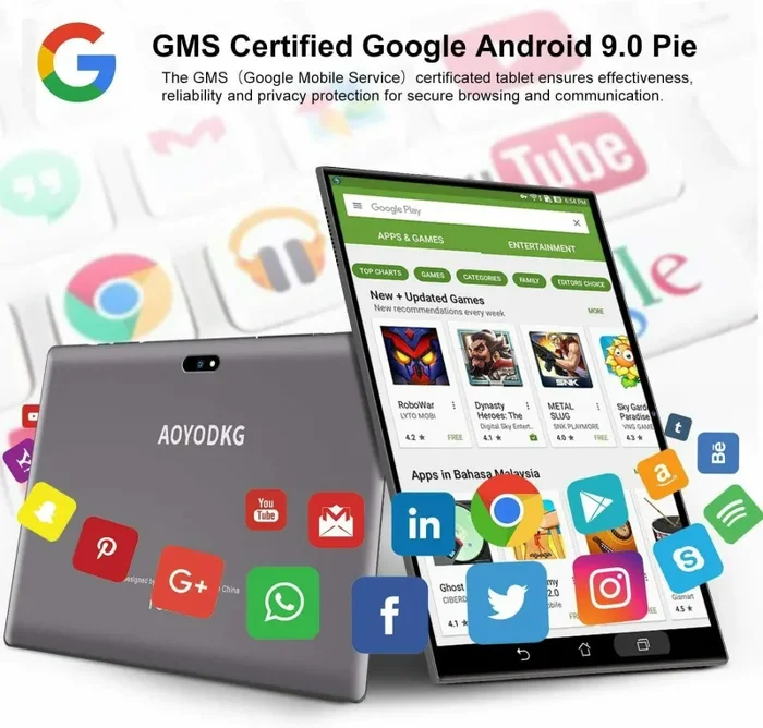 - ③☝✔ [Maggiore assistenza] Il nostro tablet dispone di una vasta gamma di accessori in vendita, in modo che i clienti possano utilizzarli ovunque. Dotato di sistema Android 9.0 Pie. Dopo la certificazione GOOGLE GMS, possiamo scaricare qualsiasi applicazione gratuitamente nel negozio GOOGLE. Giochi, musica, bellezza, e-mail, meteo, applicazioni social, ecc. Supporto: skyGO, Netflix, ecc. Puoi anche utilizzare cavi OTG per collegare determinati dispositivi, come tastiere, mouse e altoparlanti.