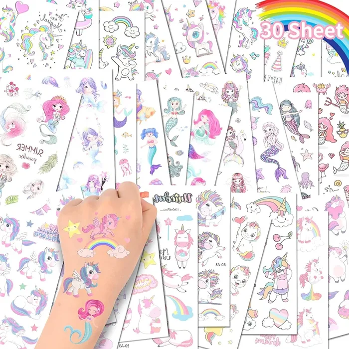 ACWOO Tatuaggi Temporanei per Bambini, Tatuaggi Finti per Ragazze Ragazzi, 20 Fogli Unicorno e 10 Fogli Sirena Tatuaggi Temporanei Set, Giocattoli Gadget per Ragazza Bambini Adulti Festa Compleann
