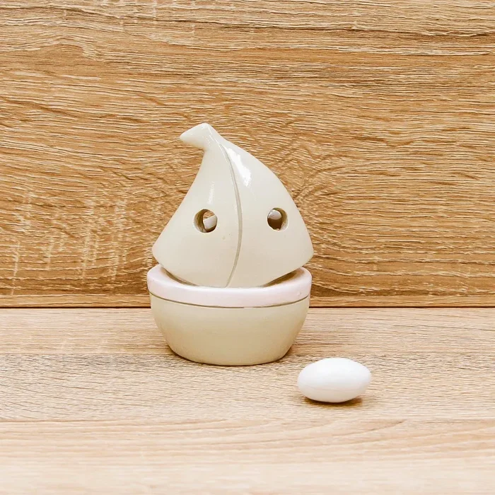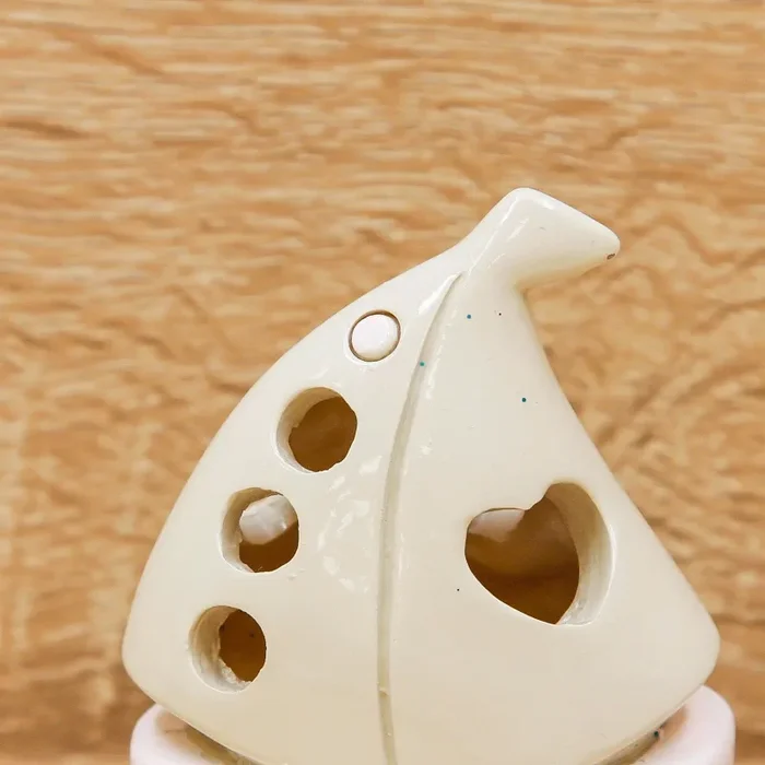 Barca a Vela in Ceramica dal colore tortora con rifiniture Rosa. La Bachetta ha dei fori che permettono, una volta accesa la lucetta, di creare dei giochi di luci.