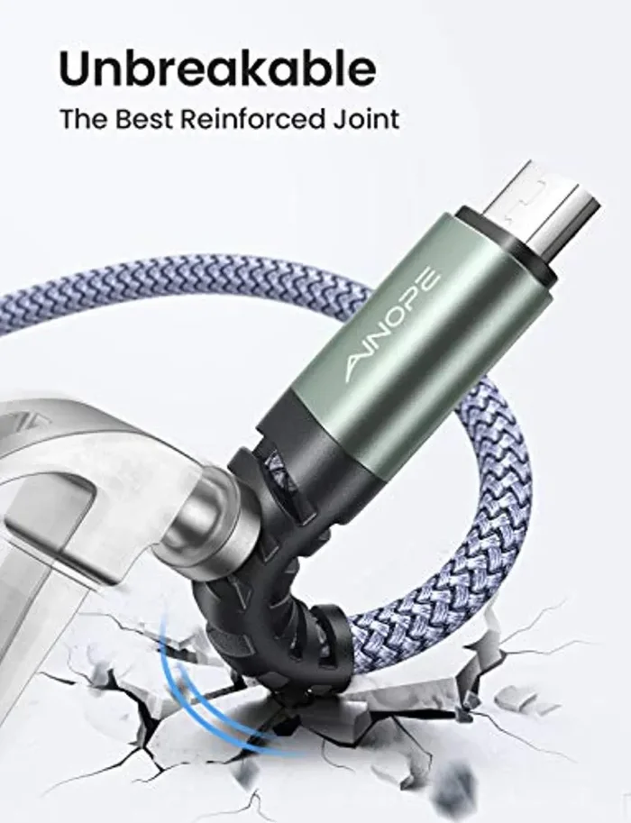 - ✅ [Giunto rinforzato SR e treccia di nylon] Lo speciale design del giunto SR di questo cavetto micro usb non si strapperà mai e offre una protezione multipla per il cavo. La custodia in alluminio premium offre una ricarica più sicura e affidabile. La giacca intrecciata in nylon ultraleggero con oltre 12.000 curve garantisce anni di utilizzo senza problemi. La funzione flessibile previene i grovigli e facilita la corretta organizzazione del cavo usb android.