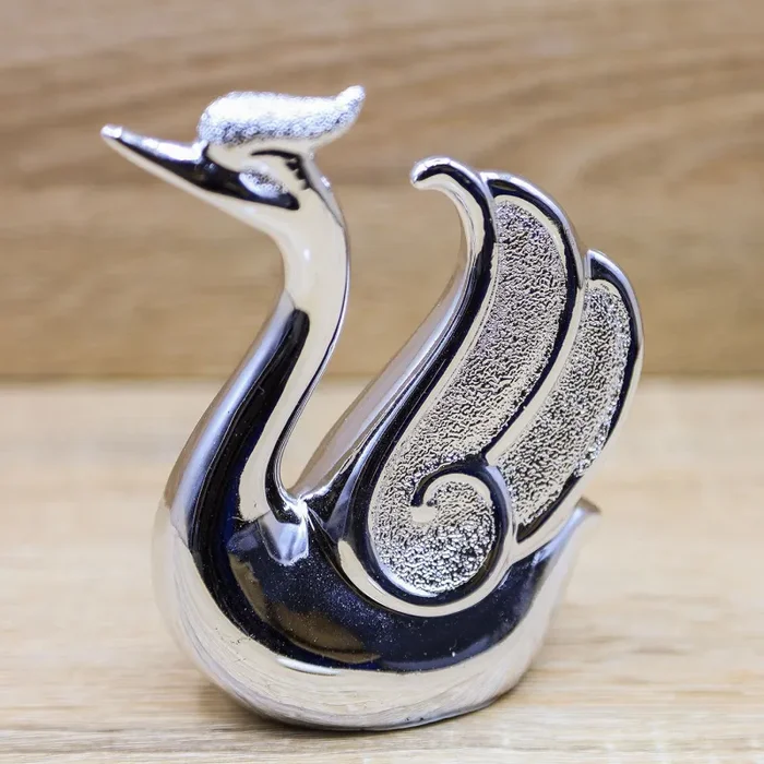 Statuina di un cigno Smaltato Argento, firmato De Santis Argenti.