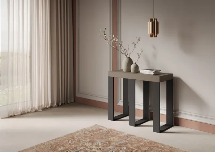 Consolle Allungabile 90-300x40x77 cm Sintesi Premium Tortora Telaio Antracite