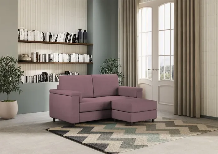 Divano 2 Posti con Pouf 148x155x85 cm Marrak in Tessuto Prugna