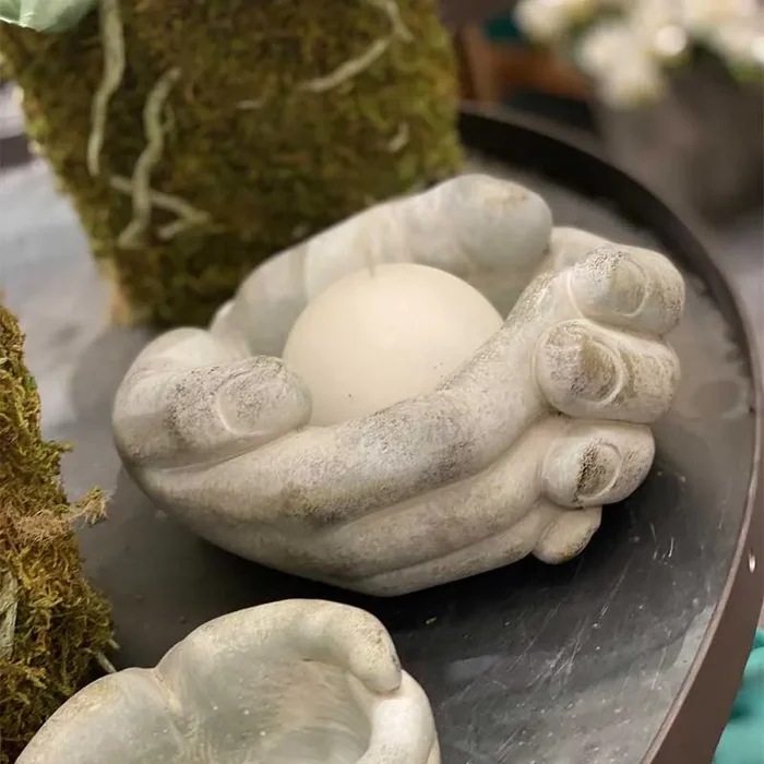 EDG Enzo De Gasperi Vaso Cemento Mani a Coppa H 10 Cm D 17 Cm Light Grey Waterproof