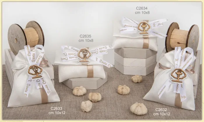 ETM Sacchetti Portaconfetti Nastro Comunione 10 x 12 Cm Bianco 12 Pz