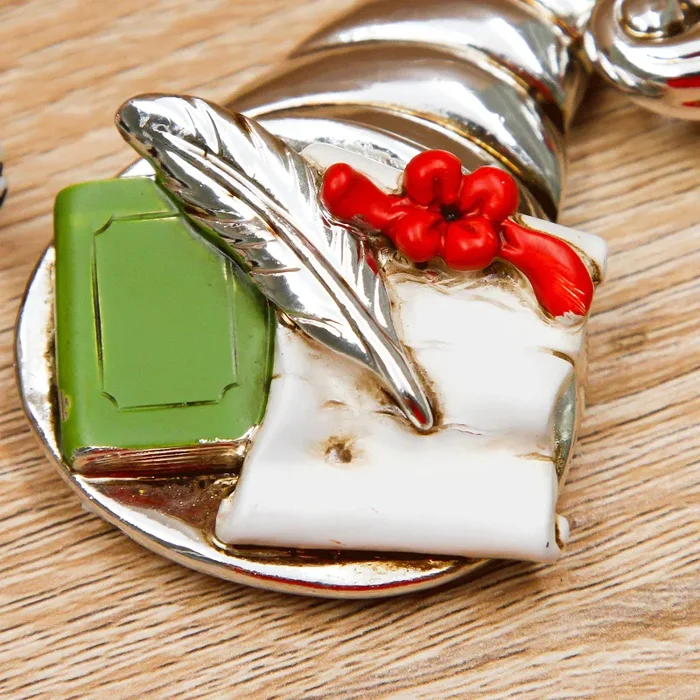 Calamita Cornucopia dal colore Argento in Tre Modelli Assortiti. Ogni oggetto ha dei simboli della laurea.