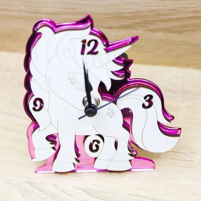 Orologio Unicorno con bordi rosa a specchio, firmato Debora Carlucci.