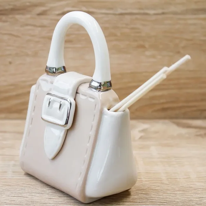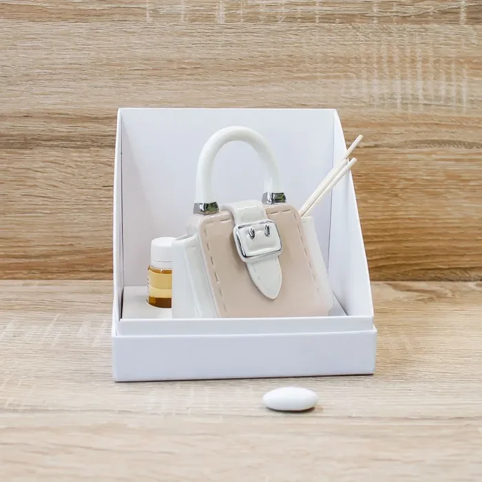 Profumatore Borsa Tortora, con fibbia panna. Curata nei minimi particolari dai nostri artigiani, firmato Porcellana di Capodimonte.