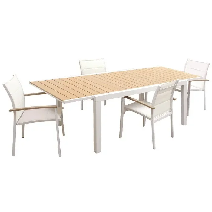 Tavolo da giardino allungabile in alluminio bianco con piano effetto legno – Ever