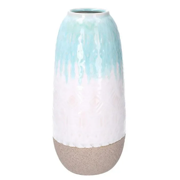 Vaso ceramica mare 33 cmVaso in ceramica stile mare, sabbia, bianco e azzurro. Dimensioni: 15,5 x 15,5 x h. 33 cm