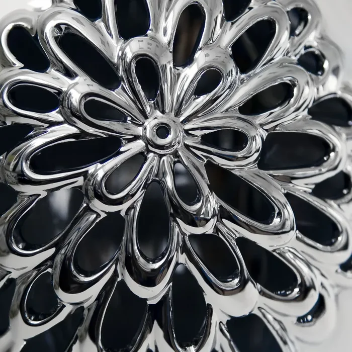 Vaso in Porcellana Bianca Smaltata traforata con Fiore in platino argento.