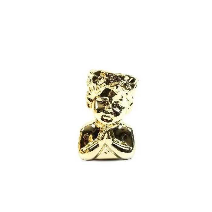 Vaso decorativo Putto realizzato in ceramica color oro. Dimensioni: 13,8x11x18,7h cm.