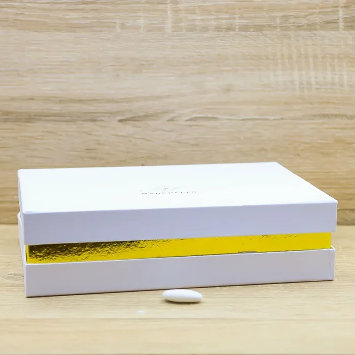 Il prezzo con la confezione comprende: Astuccio, Doppio Nastro, Gessetto o Fiore a Scelta, Portaconfetti e 5 Confetti.