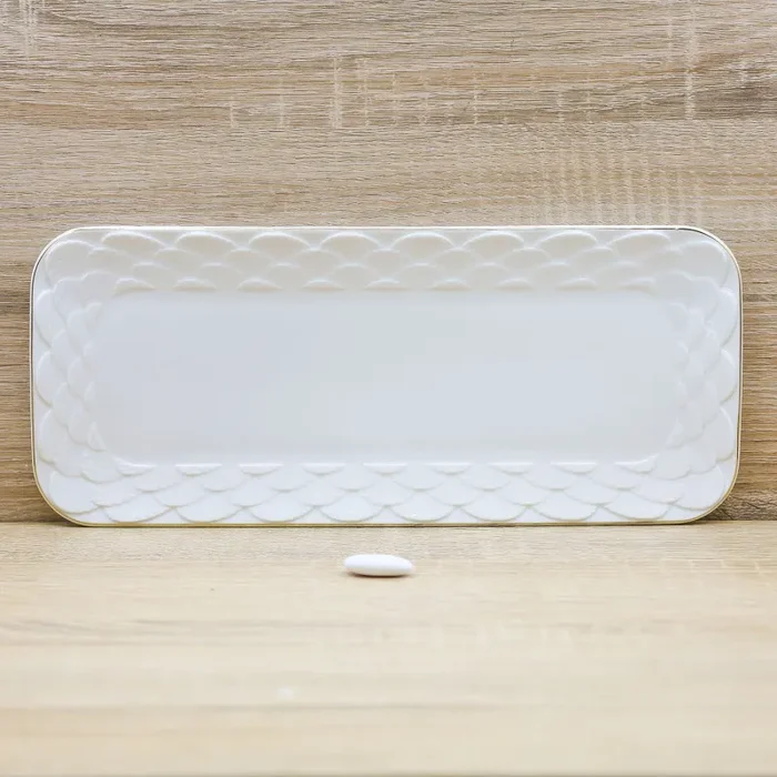 Vassoio in porcellana con decori e bordino oro, firmato Madrhélen.